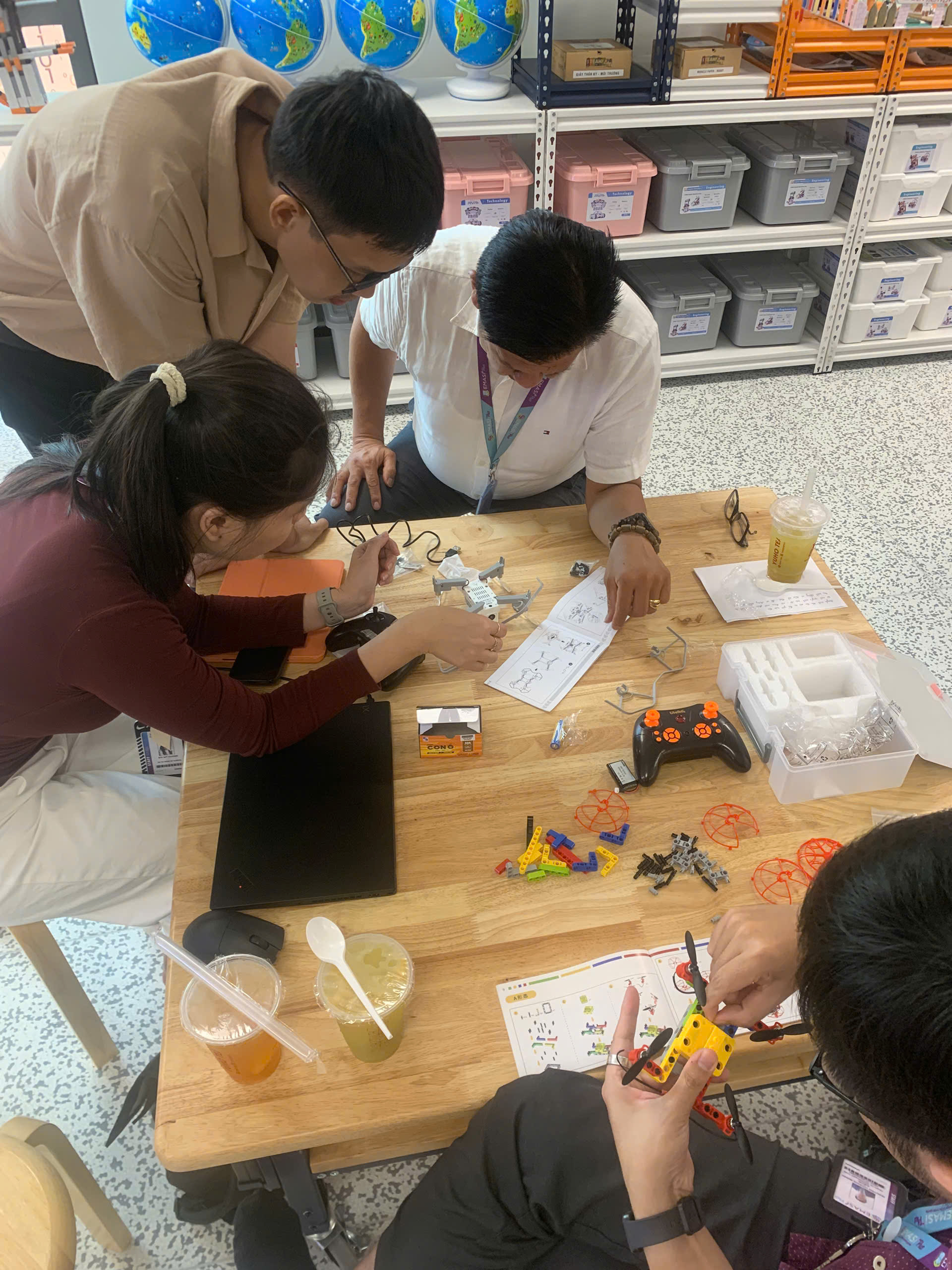 Giáo viên được trực tiếp tham gia các hoạt động thực hành với thiết bị, robot và bộ học cụ STEM. Những buổi làm việc nhóm giúp họ rèn luyện khả năng tư duy logic, lập trình cơ bản, đồng thời học cách tổ chức các tiết học STEM sinh động, gần gũi với học sinh.