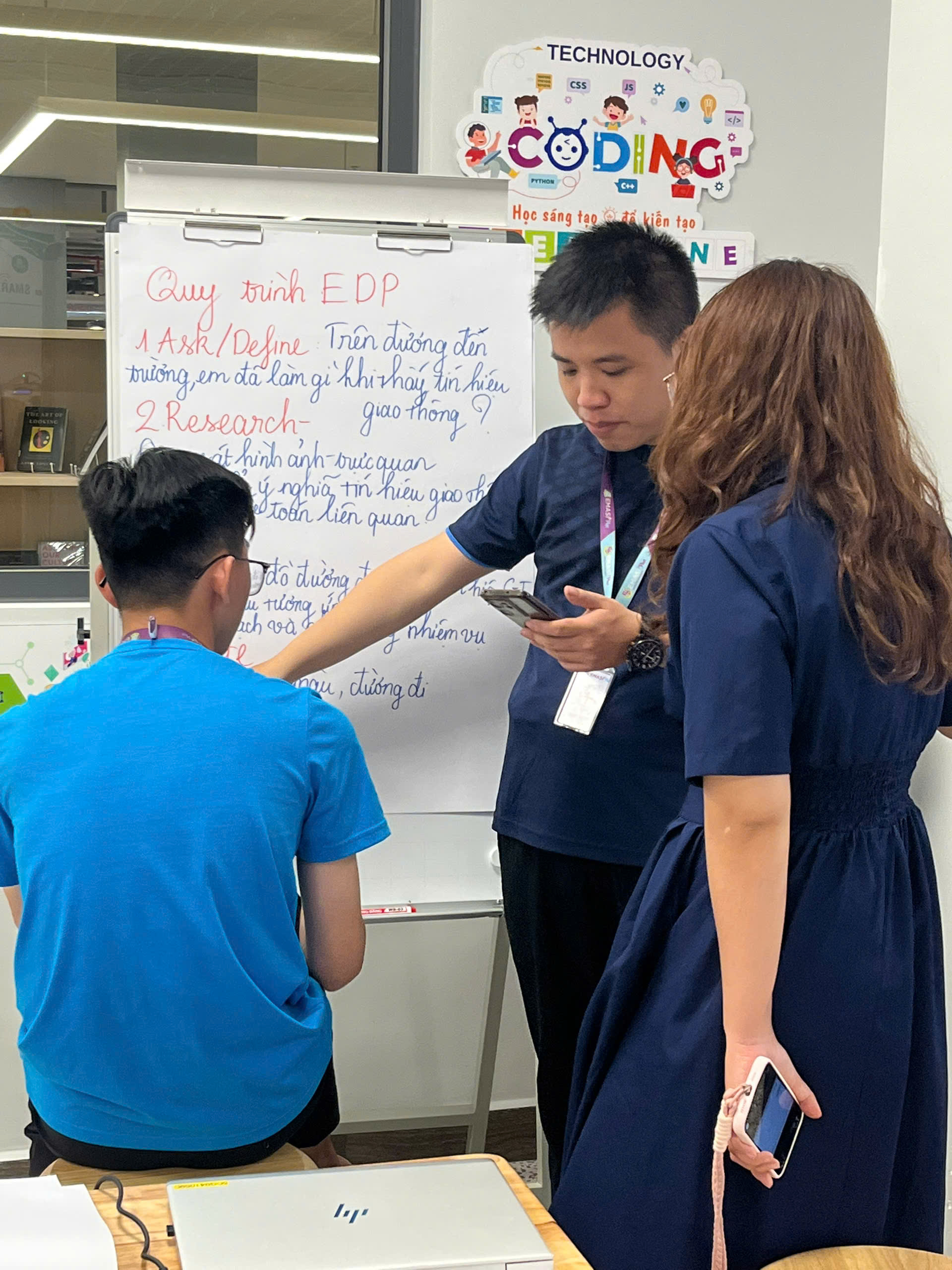 Các chuyên gia từ STEAMZone đã giới thiệu những phương pháp Giáo dục STEM tiên tiến, giúp giáo viên hiểu rõ cách kết hợp giữa lý thuyết và thực hành. Nội dung tập huấn tập trung vào tư duy thiết kế, giải quyết vấn đề và học thông qua trải nghiệm – những yếu tố cốt lõi trong mô hình Giáo dục STEM quốc tế.