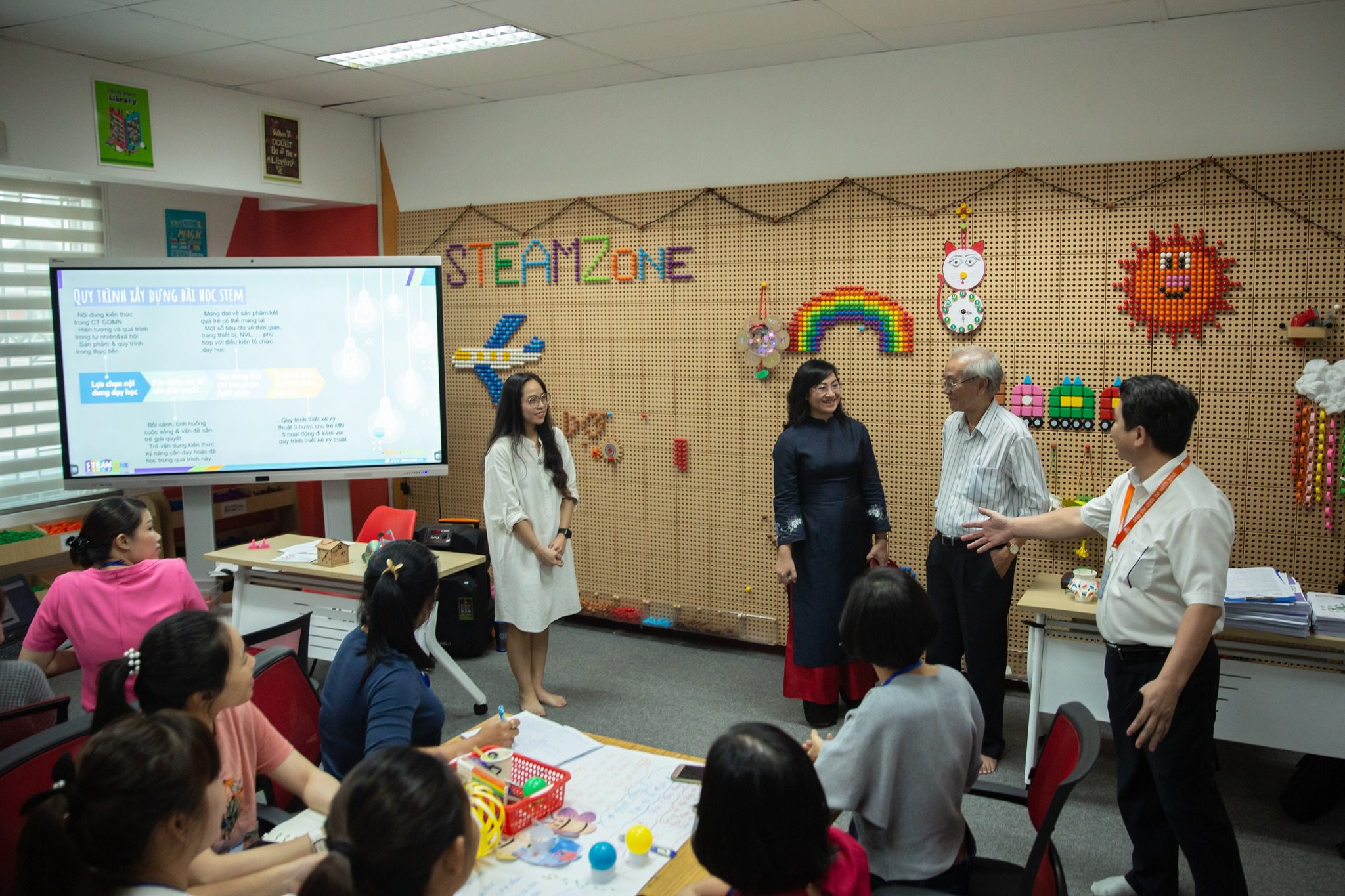 Đoàn cũng được tham quan 1 trong những lớp Bồi dưỡng giáo viên tại trung tâm STEAMZone trong khóa học đào tạo giáo viên mầm non về phương pháp STEM.