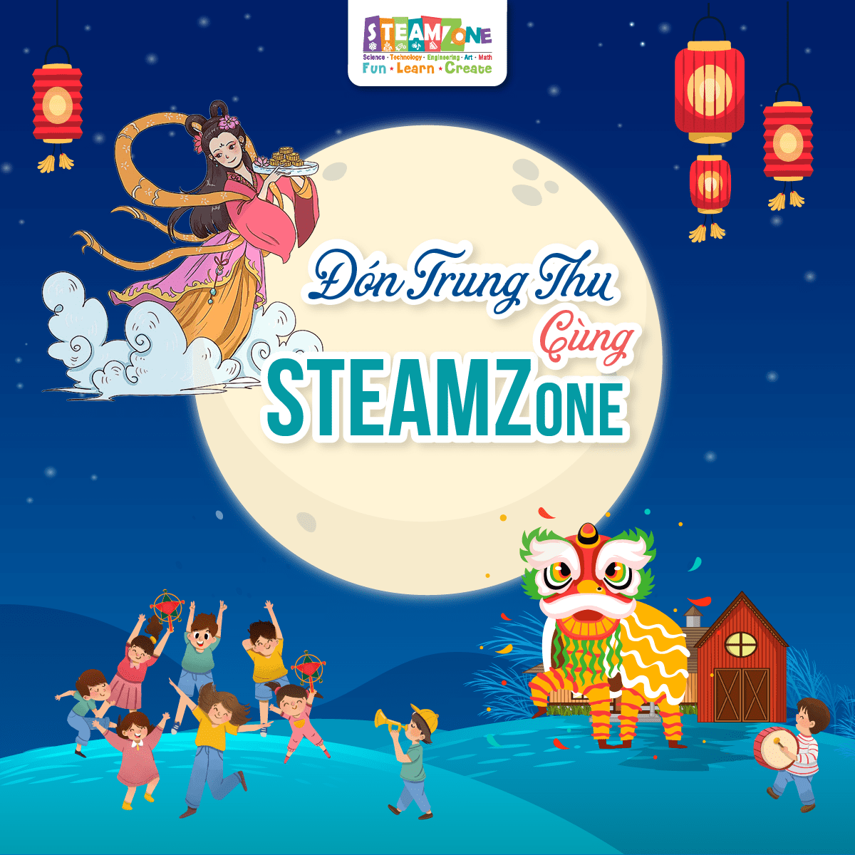Nhân dịp Tết Trung Thu 2023, 𝐒𝐓𝐄𝐀𝐌𝐙𝐨𝐧𝐞 xin mến chúc Quý nhà trường, Quý phụ huynh và toàn thể học viên đang theo học tại trung tâm có một mùa trăng hạnh phúc, ấm áp và an lành bên những người thân yêu.