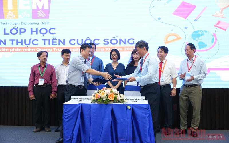 Đại diện lãnh đạo Sở GD-ĐT TP Hồ Chí Minh và Công viên Phầm mềm Quang Trung ký thỏa thuận hợp tác