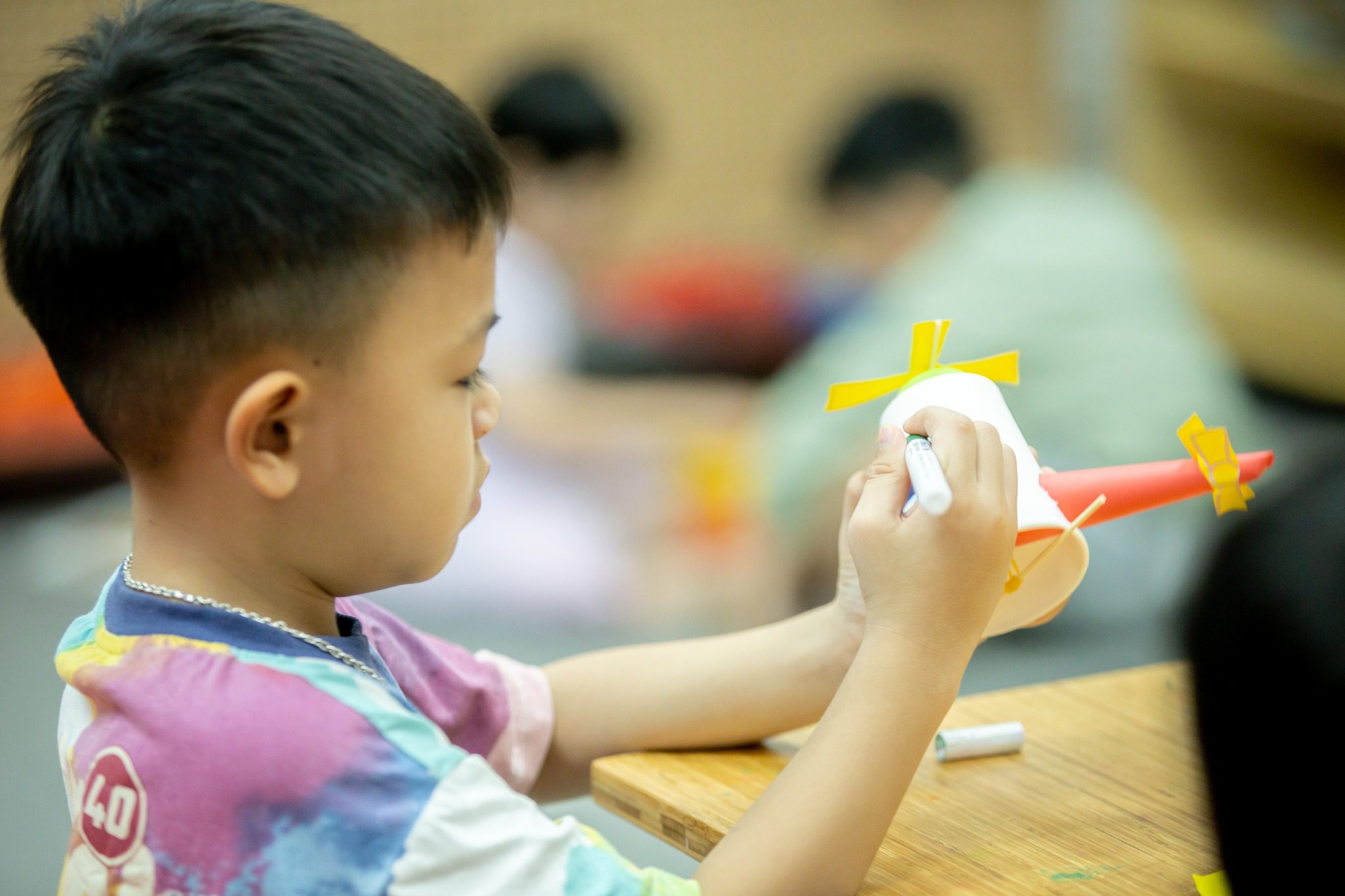 Sử dụng các nguyên vật liệu đa dạng, các em đã biết cách kết hợp và sáng tạo để tạo ra mô hình máy bay trực thăng. Việc này không chỉ thách thức tư duy sáng tạo mà còn phát triển khả năng làm việc nhóm và tư duy logic.