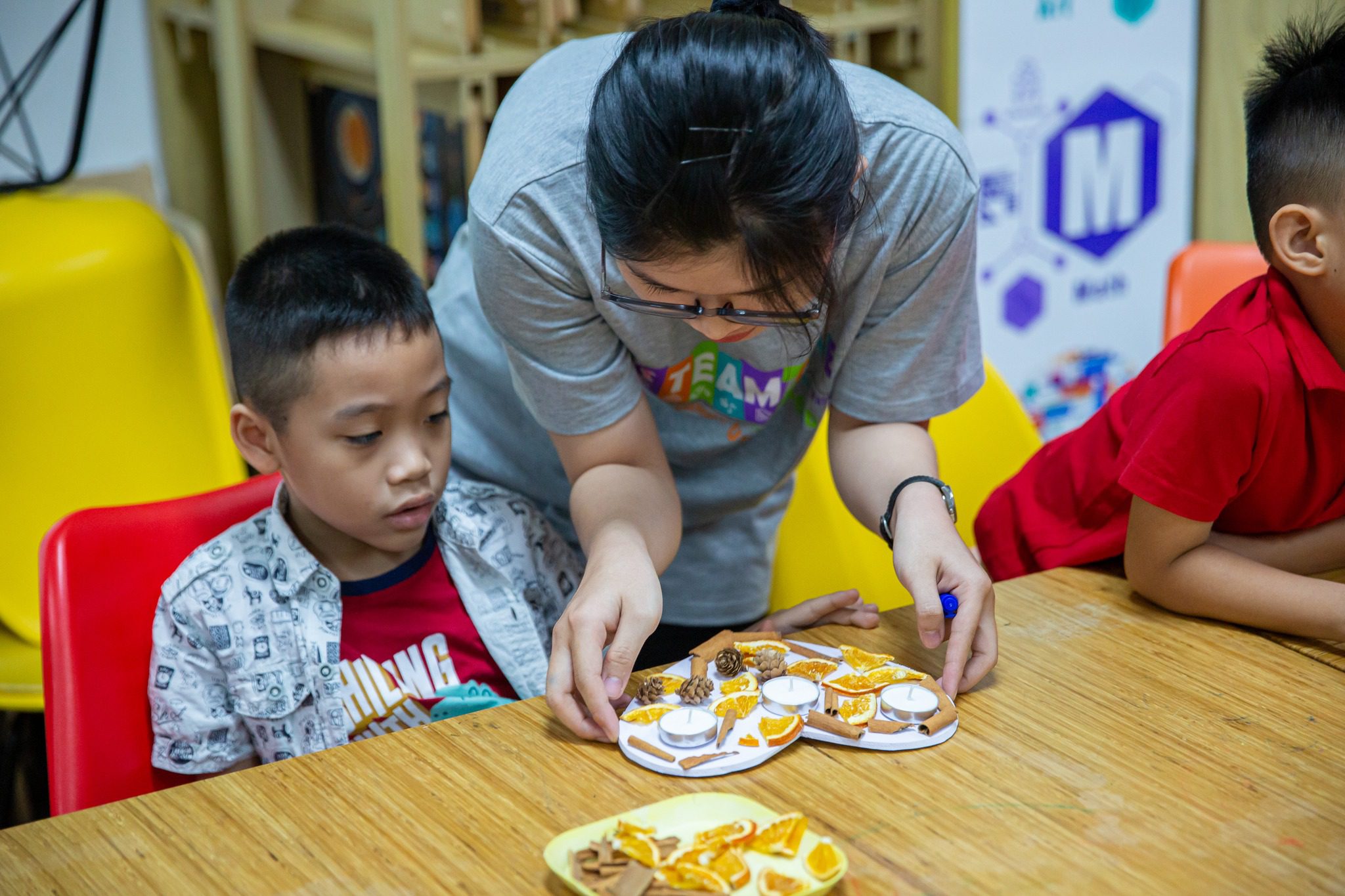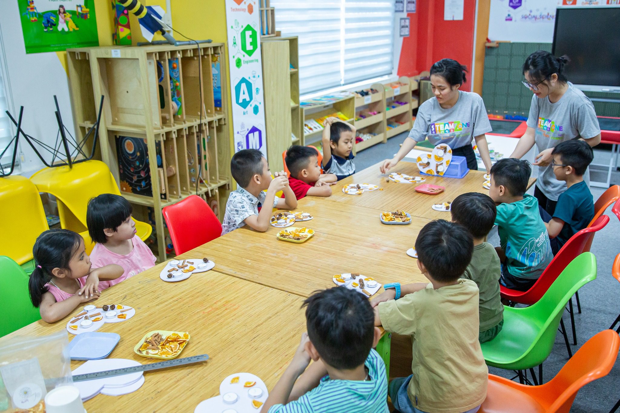 Còn gì tuyệt vời hơn khi chính tay các bạn nhỏ làm ra những chiếc nến thơm xinh xắn, đáng yêu dành tặng cho những người mà trẻ yêu thương nhất. Với sự hỗ trợ của giáo viên STEAMZone, trẻ được tự do khám phá, sáng tạo, tham gia vào hoạt động trải nghiệm hoàn thành nến thơm vô cùng ý nghĩa.