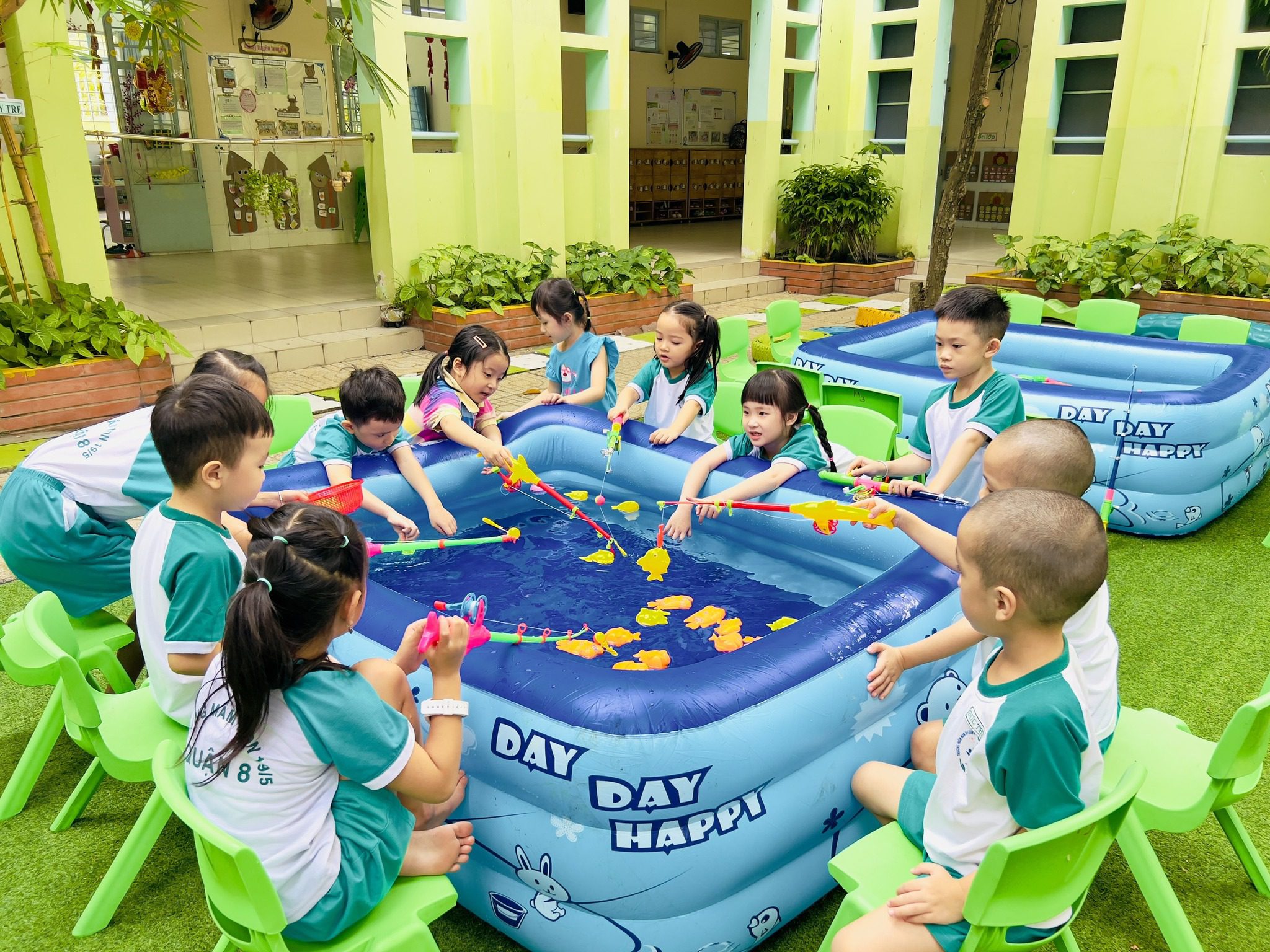 - Hoạt động 4: Outdoor và câu cá – Giúp trẻ làm quen với đường ống nước, hệ thống bơm tay và banh trượt.
