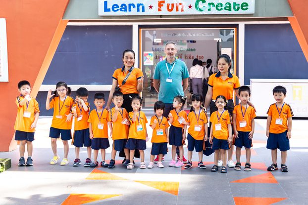 Trường sở hữu khuôn viên 8.000m2 với nhiều cây xanh, không gian mở thoáng mát, tọa lạc tại khu vực giao thông an toàn và thuận tiện, giúp phụ huynh dễ dàng đưa đón các em học sinh.