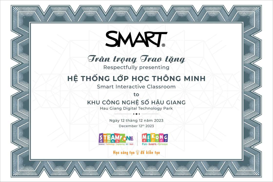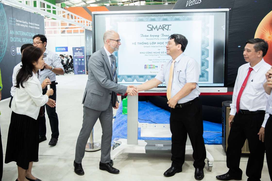Ngày 12/12/2023, thay mặt Tập đoàn Smart Canada – Ngài Shawn Steil, Đại sứ Đặc mệnh toàn quyền Canada đã trao tặng Hệ thống Giáo dục Thông minh cho Khu Công nghệ số Hậu Giang, đánh dấu một bước quan trọng trong sự hợp tác giữa Canada và Việt Nam trong lĩnh vực giáo dục.