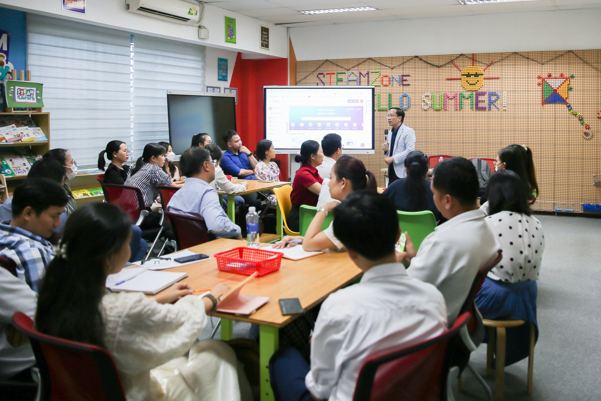 Điểm đặc biệt của buổi tập huấn lần này là sự góp mặt và hướng dẫn của Tiến sĩ Nguyễn Thành Hải – một chuyên gia hàng đầu về giáo dục STEM, với hơn 10 năm kinh nghiệm trong công tác đào tạo giáo viên ở Việt Nam và Hoa Kỳ. Trong suốt buổi tập huấn, Tiến sĩ Nguyễn Thành Hải đã chia sẻ những kiến thức sâu sắc về giáo dục STEM và các phương pháp giảng dạy hiệu quả. Các giáo viên đã được tìm hiểu và áp dụng những nguyên tắc căn bản của STEM vào giảng dạy một cách linh hoạt và sáng tạo. Đồng thời, buổi tập huấn cũng là cơ hội để các giáo viên trao đổi kinh nghiệm và học hỏi lẫn nhau.