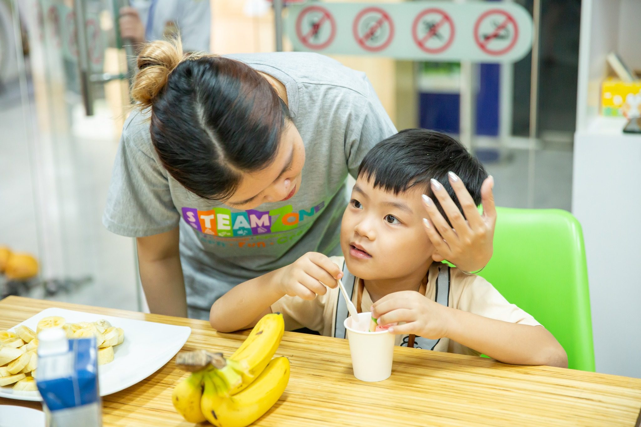 Bên cạnh niềm vui thưởng thức kem cuộn, hoạt động STEM này còn giúp các em hiểu về quá trình chuyển đổi từ chất lỏng sang chất rắn và quá trình đông đặc của kem. Điều này giúp các em tích lũy kiến thức và hiểu rõ hơn về các khái niệm khoa học cơ bản.