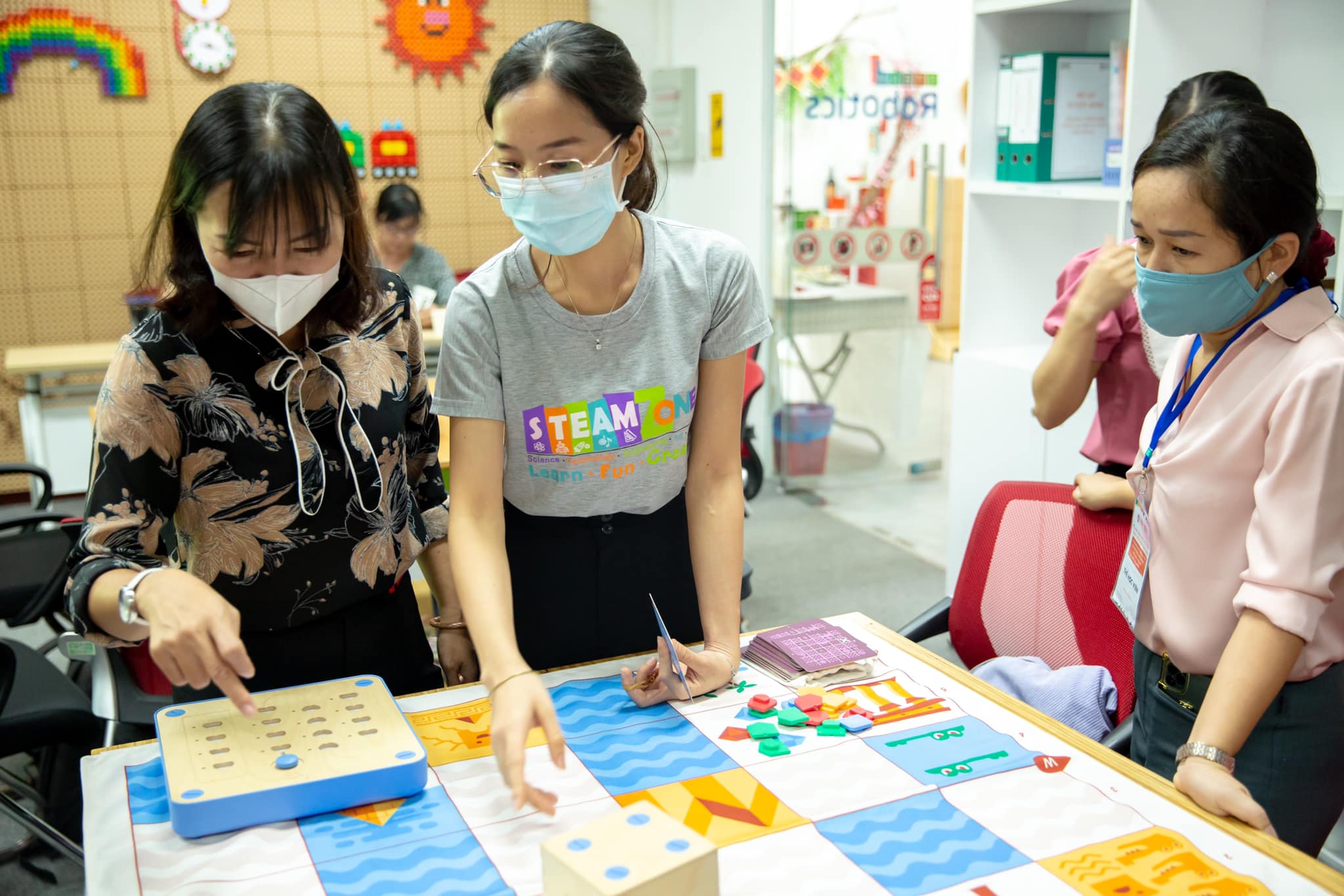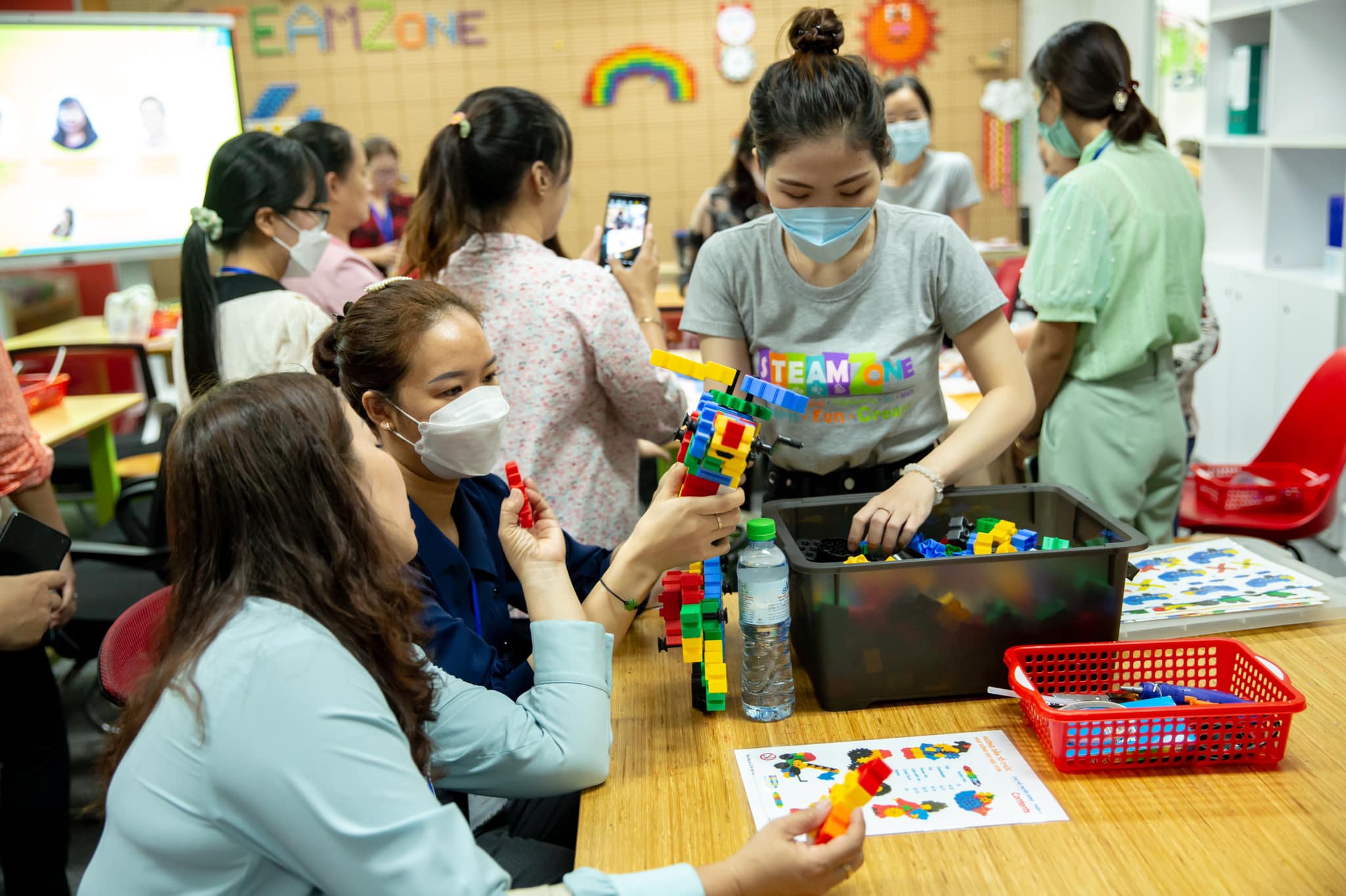 Trải qua gần 2 tháng vừa qua (13/07 – 30/08) trung tâm STEAMZone đã được gặp gỡ, chia sẻ và tập huấn 540 giáo viên Mầm non thuộc lớp BDGV.STMN khóa 01. Lớp thực hành 10 vừa qua đã đánh dấu cột mốc khép lại hành trình đào tạo của khóa 01. Ngày hôm nay, chương trình đào tạo tiếp tục được diễn ra với sự khởi đầu của lớp thực hành 01 của khóa 02, trong chuỗi chương trình đào tạo bồi dưỡng giáo viên mầm non về phương thức giáo dục STEM hỗ trợ phương pháp dạy học phát triển phẩm chất năng lực của trẻ trong năm 2022 là lớp học từ ngày 16/08 – 02/10. Khóa học phối hợp với Sở Giáo dục và Đào tạo Thành phố Hồ Chí Minh.