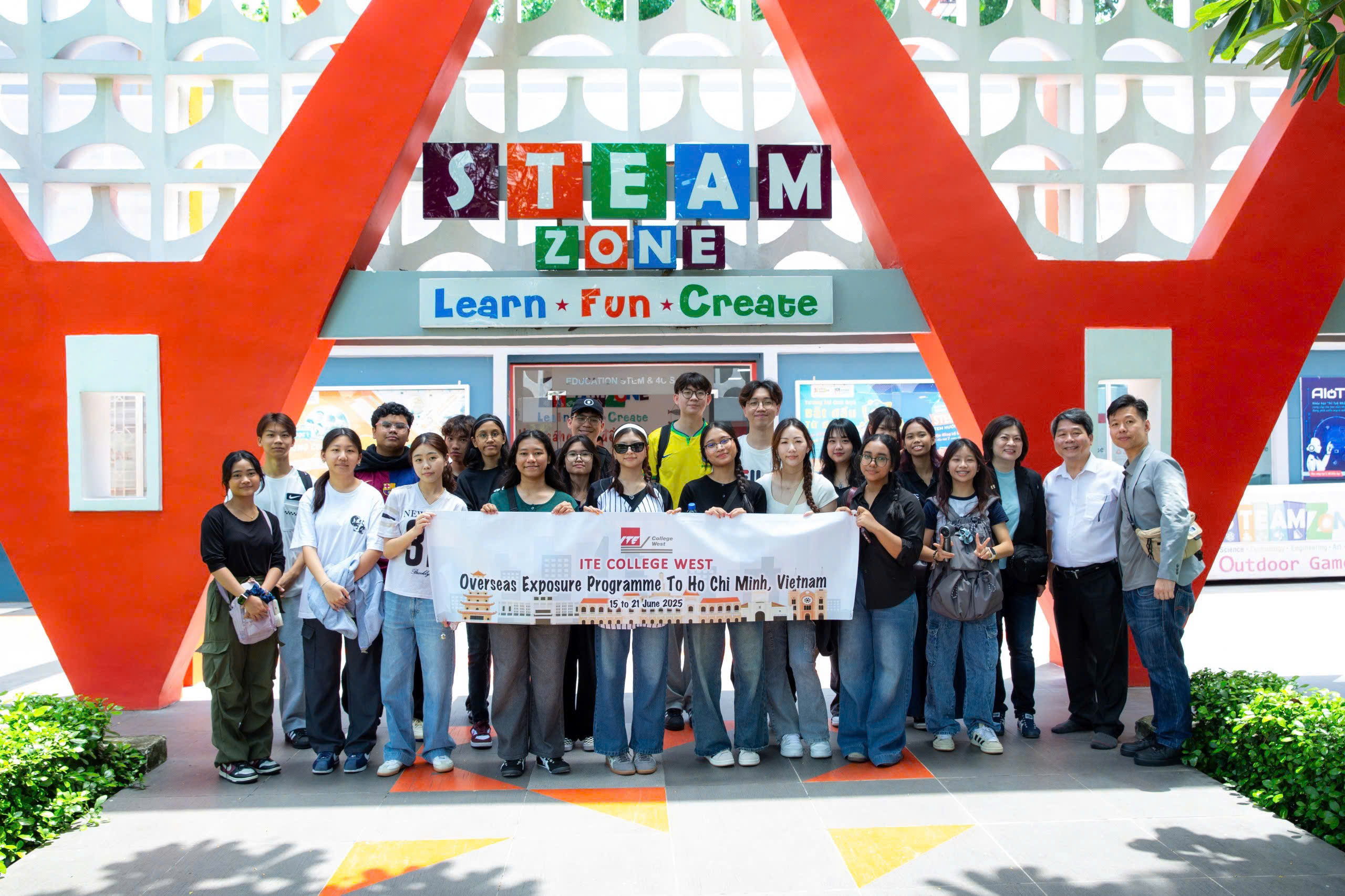 Sáng ngày 16/6/2025, Trung tâm Giáo dục STEAMZone vui mừng chào đón đoàn sinh viên và giảng viên đến từ ITE College West – trường dạy nghề lớn nhất tại Singapore, trong khuôn khổ chương trình Overseas Exposure Programme to Ho Chi Minh City.